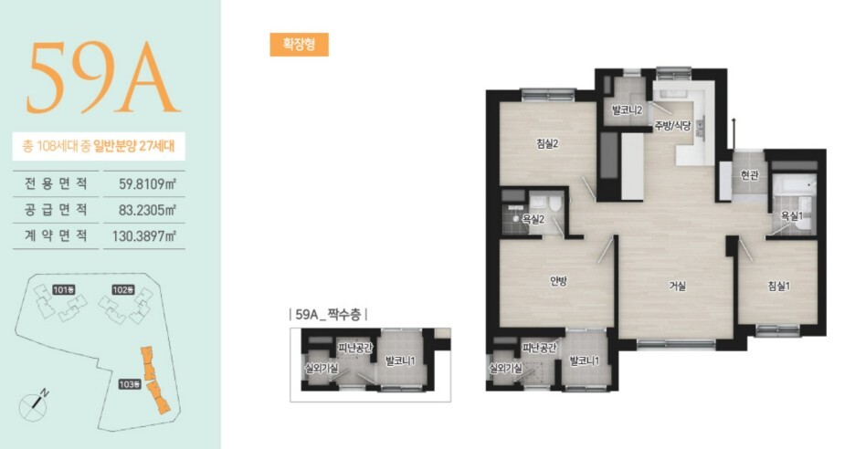 구체적으로 59㎡ 세대를 살펴보면, 전반적으로 무난한 판상형 구조를 갖추고 있고, 대부분의 세대에서 좋은 조망을 자랑합니다. 특히, 청계리버뷰자이 쪽으로는 일부가 가려질 수 있지만 대체로 남향으로 개방된 풍경을 보여줍니다. 다만, 확장 전 평면도를 살펴봐야 실제로 얼마나 넓은지 확실히 알 수 있을 것 같습니다.