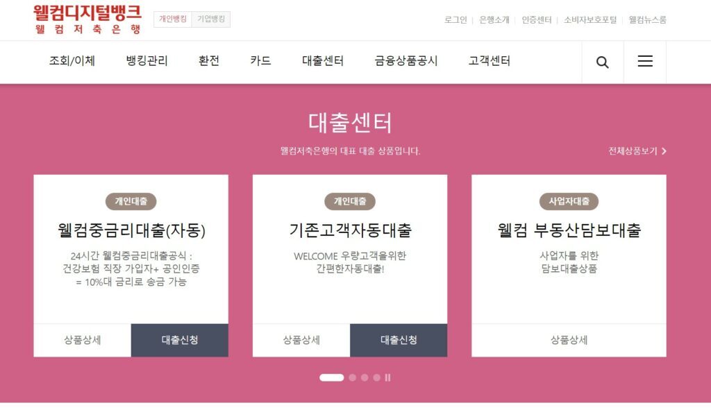 - 웰컴저축은행 홈페이지 방문 후 신청 가능