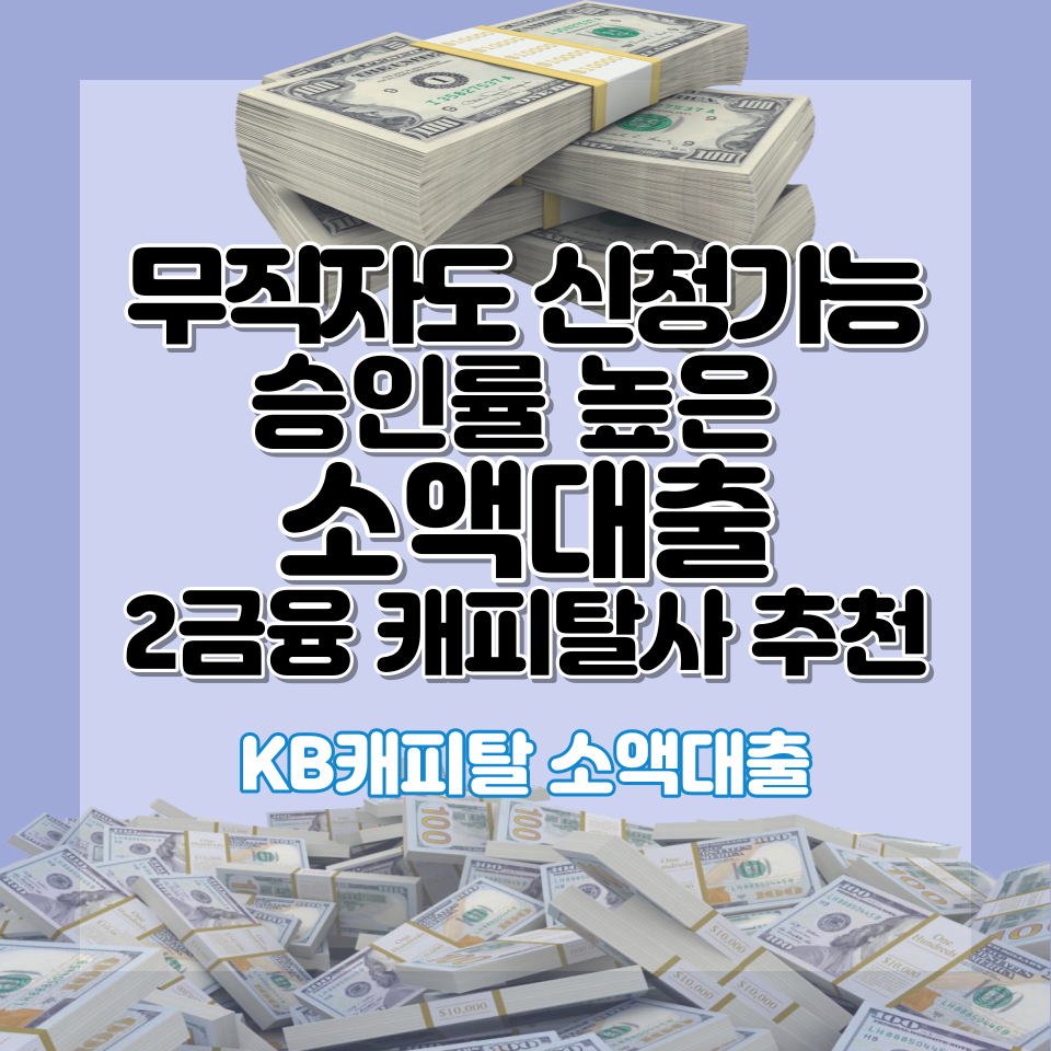 KB캐피탈의 소액론 신용대출 상품은 보다 폭넓은 이용자들에게 열려있습니다. 무직자 등의 특별한 조건을 가진 분들이라도 신청이 가능한 이 상품은 높은 승인률을 자랑하며, 이로 인해 많은 대출 소비자들로부터 큰 호응을 받고 있습니다.